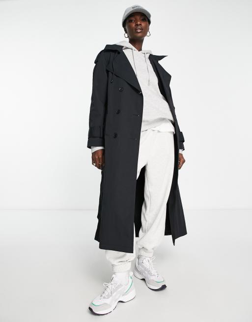 ASOS DESIGN sporty trench coat with hood with a detachable hood in black