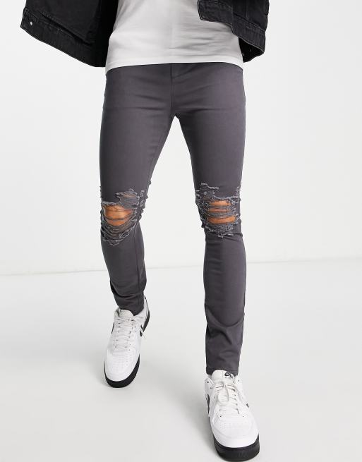 ASOS DESIGN spray on chinos with rips in charcoal