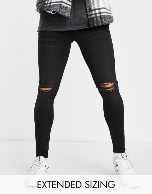 ASOS DESIGN spray on jeans with power stretch in black with busted knee