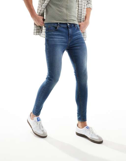 ASOS DESIGN spray on jeans with power-stretch in mid wash blue