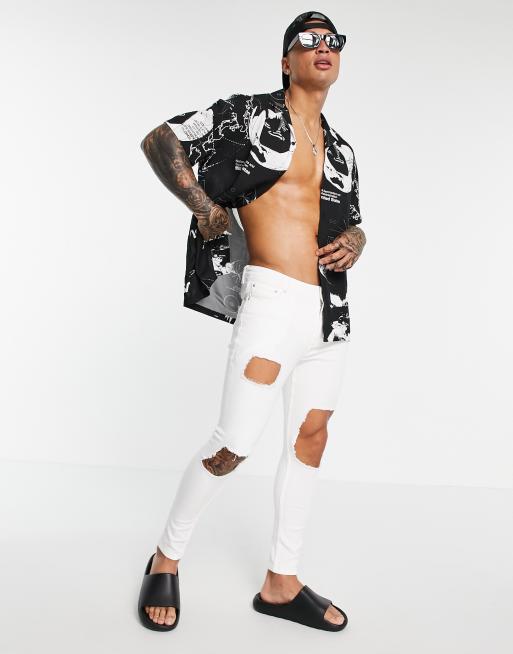 ASOS DESIGN spray on jeans with power stretch in white with open rips