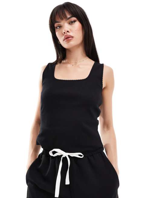 ASOS DESIGN square neck lace trim vest in black