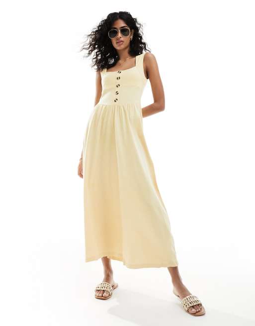 ASOS DESIGN square neck midi sundress with button detail in buttermilk