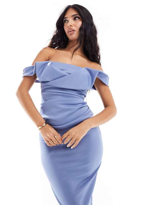 ASOS DESIGN square neck pleat bust midi pencil dress in blue