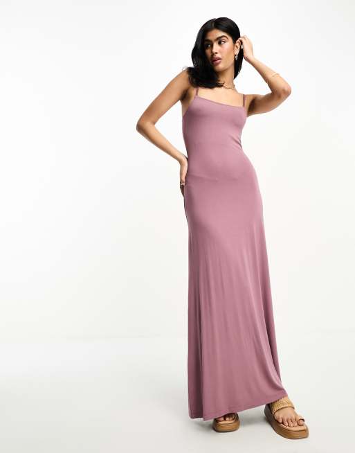 ASOS DESIGN square neck strappy maxi dress in mauve