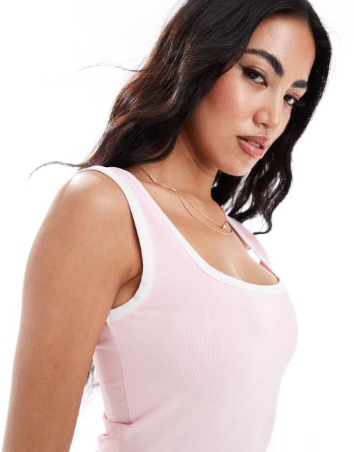 ASOS DESIGN square neck vest with contrast binding in baby pink