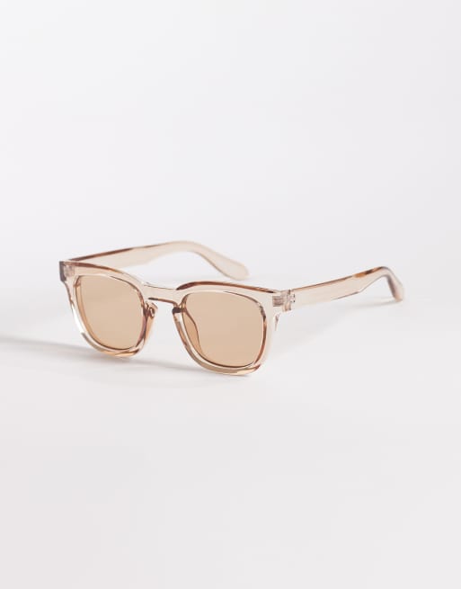 ASOS DESIGN square sunglasses in crystal pink with brown lens