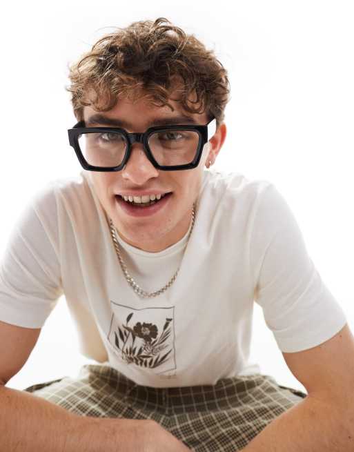 ASOS DESIGN square sunglasses with bevel frame and clear lens in black