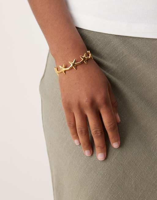 ASOS DESIGN stainless steel waterproof cuff bracelet with mini starfish detail in gold tone