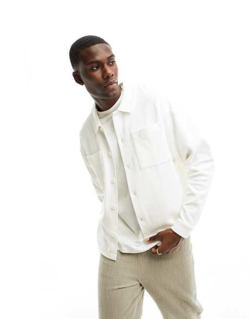 ASOS DESIGN standard fit harrington jacket with ribbed texture in cream