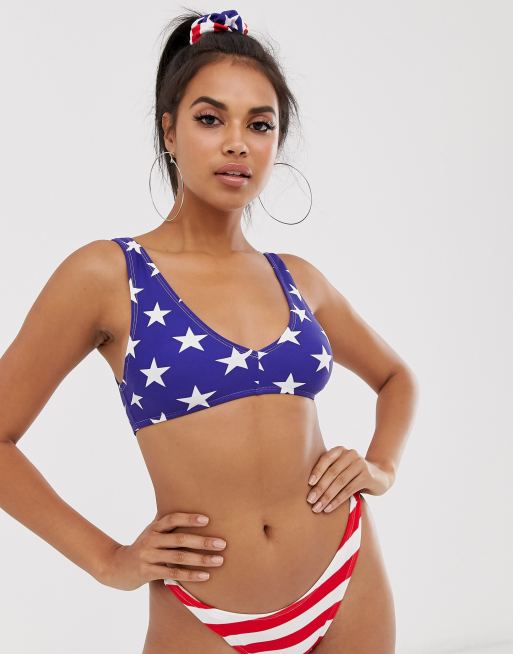 ASOS DESIGN star and stripe print crop bikini top with matching scrunchie