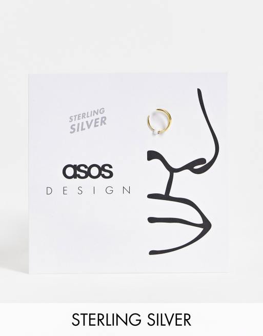 ASOS DESIGN sterling silver double hoop nose ring in 14k gold plate