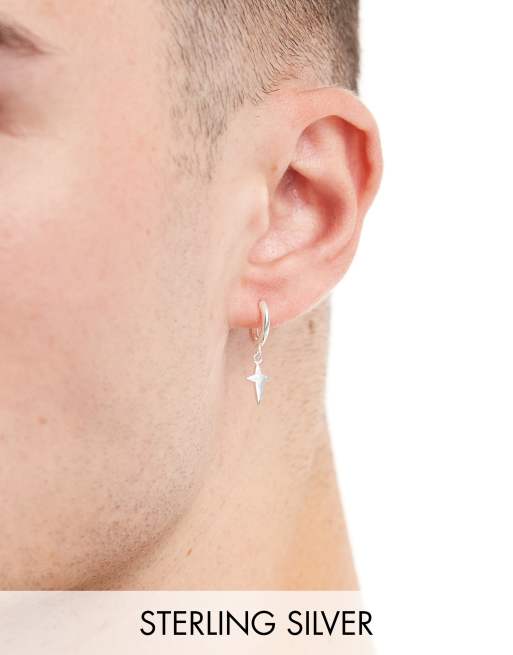 ASOS DESIGN sterling silver hoop earring with cross in silver