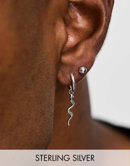 ASOS DESIGN sterling silver hoop earrings with snake pendants in burnished silver tone