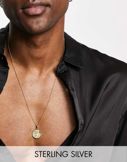 ASOS DESIGN sterling silver neck chain with St Christopher pendant with 14k gold plate