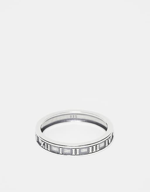 ASOS DESIGN sterling silver roman numeral ring in silver