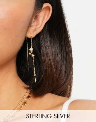 ASOS DESIGN sterling silver with gold plate pull through in celestial crystal design