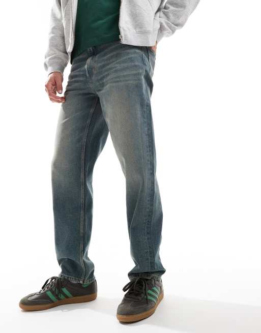 ASOS DESIGN straight fit jeans with tint in mid wash blue