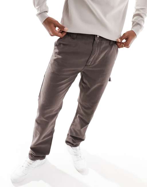 ASOS DESIGN straight leg canvas carpenter trousers in washed brown