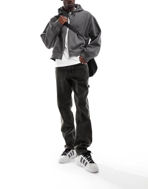 ASOS DESIGN straight leg jeans with carpenter detailing in black wash
