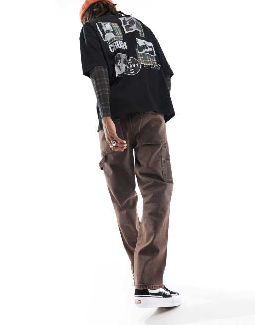 ASOS DESIGN straight leg jeans with carpenter detailing in dark brown wash