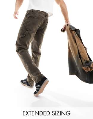 ASOS DESIGN straight leg jeans with carpenter detailing off brown wash