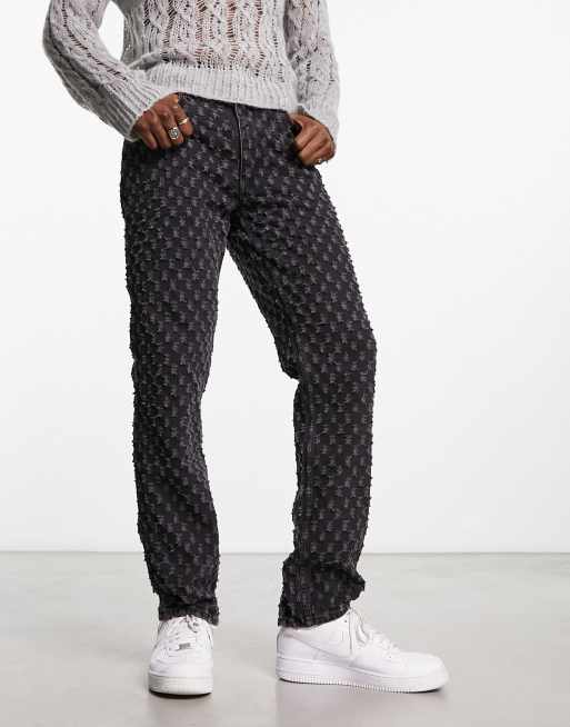 ASOS DESIGN straight leg jeans with distressed affect in washed black