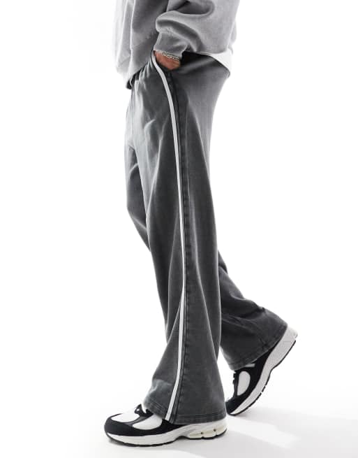 ASOS DESIGN straight leg joggers with side stripe in washed grey