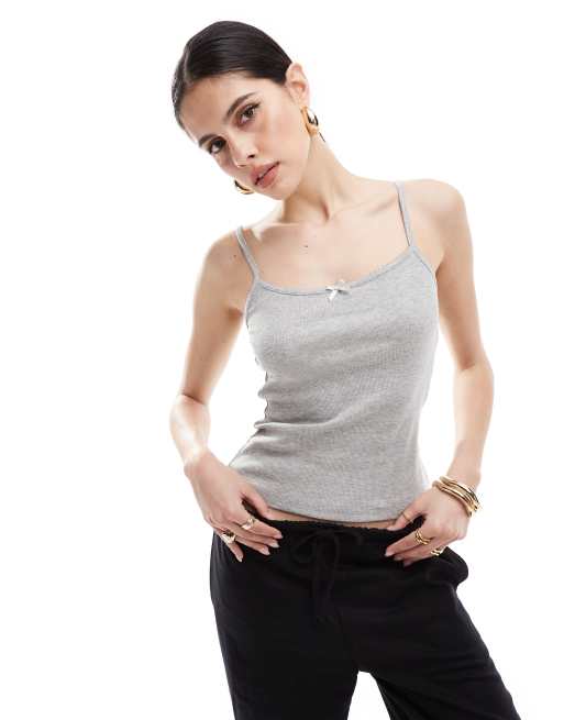 ASOS DESIGN straight neck picot trim cami with bow in grey marl