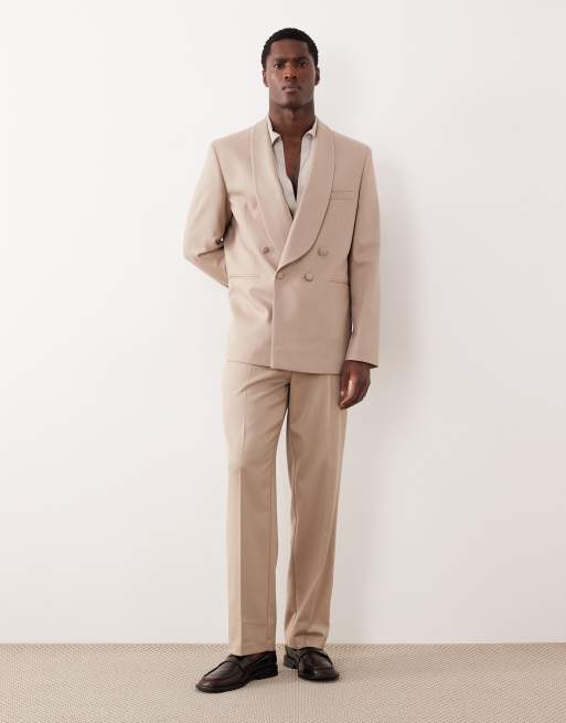 ASOS DESIGN straight tuxedo trouser in stone contrast twill