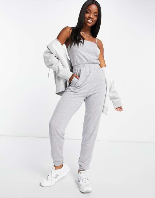 ASOS DESIGN strap jogger jumpsuit in grey sweat