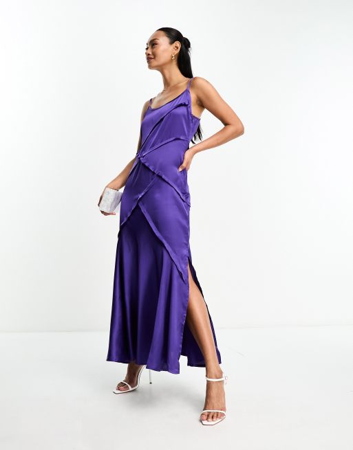 ASOS DESIGN strappy satin midi slip dress with seam detail in purple