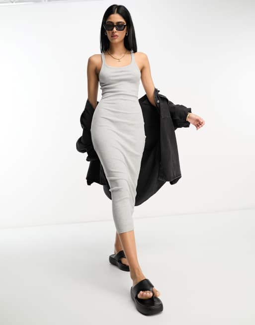 ASOS DESIGN strappy scoop vest ribbed midi dress in grey marl