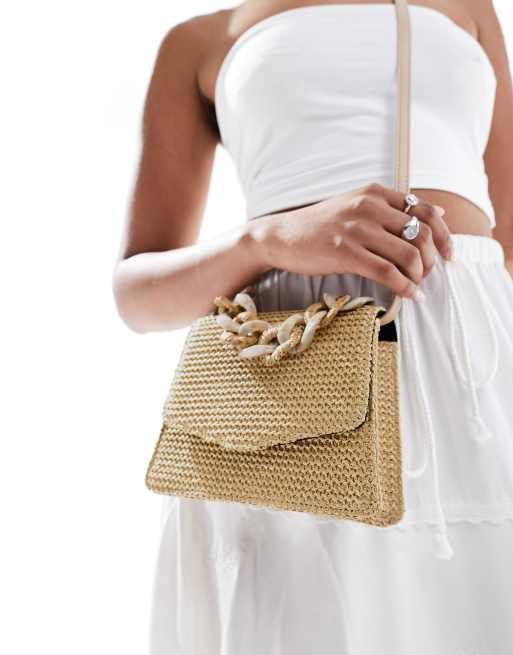 ASOS DESIGN straw crossbody bag with resin top handle and detachable cross body strap