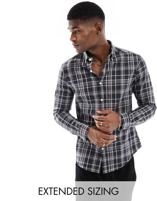ASOS DESIGN stretch slim check shirt in black and grey tartan