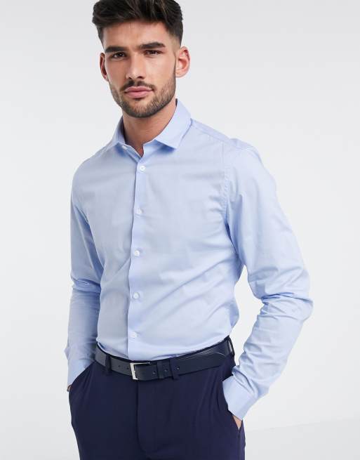 ASOS DESIGN stretch slim fit work shirt in blue