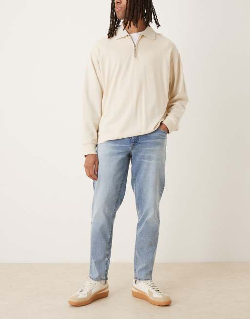 ASOS DESIGN stretch tapered fit jeans in mid wash blue