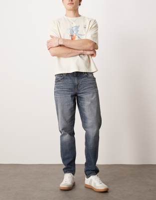 ASOS DESIGN stretch tapered jeans in mid wash blue