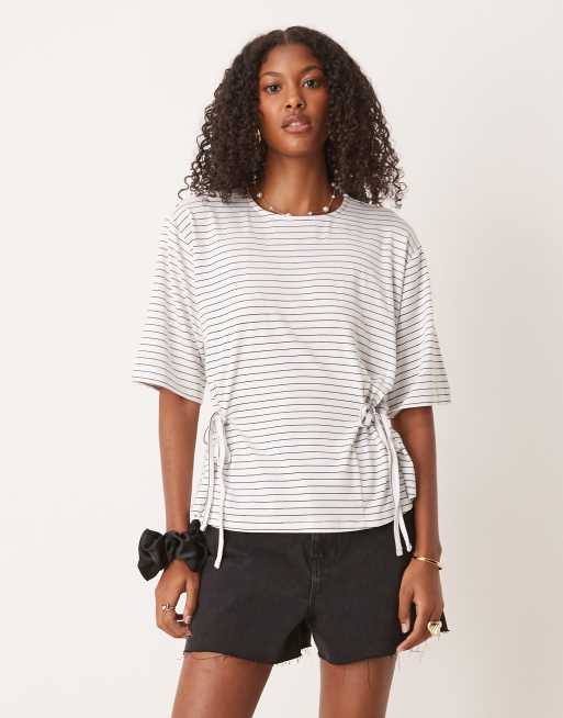ASOS DESIGN stripe cinched tie side tee in ivory