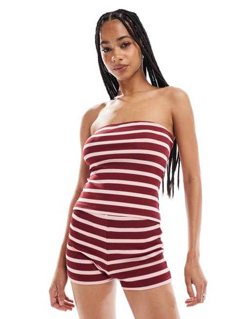 ASOS DESIGN stripe micro shorts co ord in pink