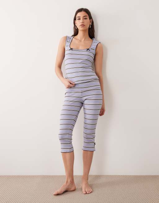 ASOS DESIGN stripe ribbed square neck vest & capri pyjama set in lilac