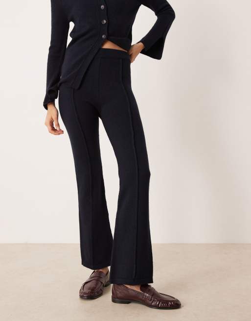 ASOS DESIGN structured knitted fit and flare trouser co-ord in navy