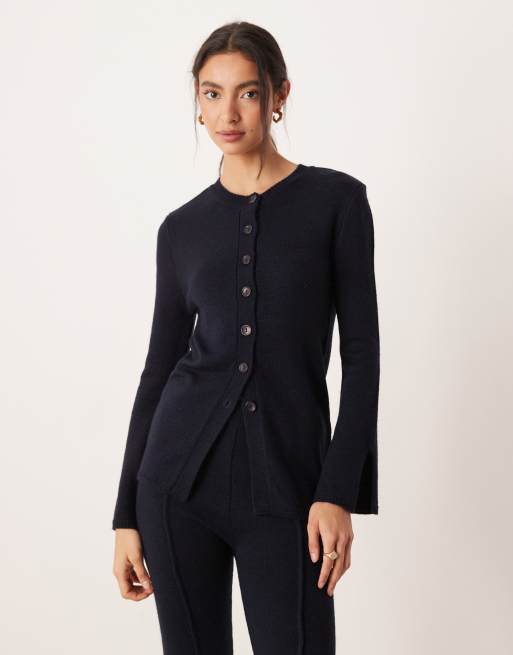 ASOS DESIGN structured longline crew neck cardigan co-ord in navy