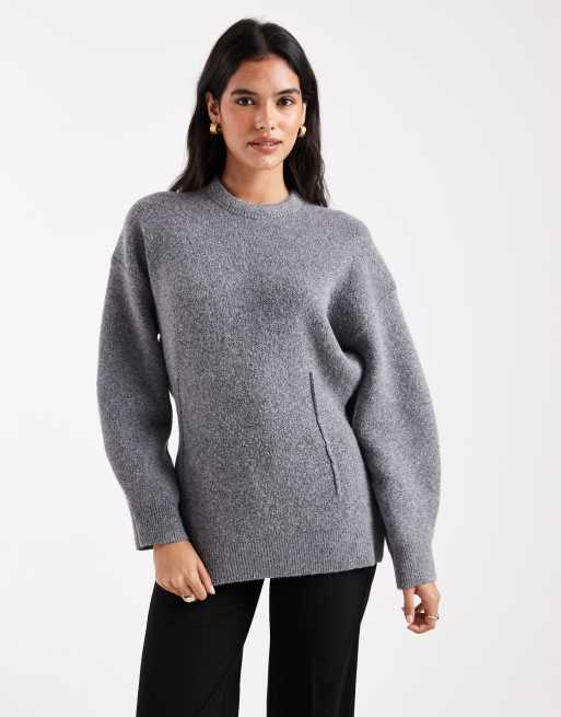 ASOS DESIGN structured longline waisted crew neck jumper in grey