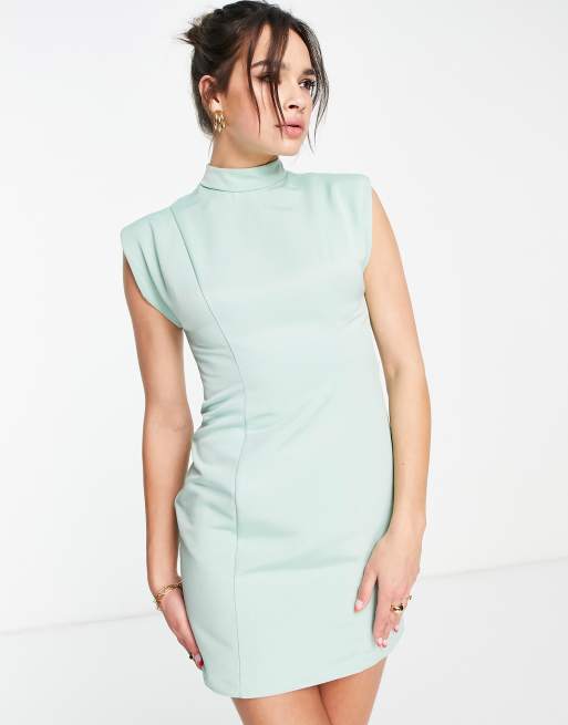 ASOS DESIGN structured mini dress with shoulder pads in sage green