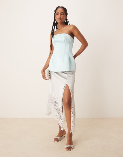 ASOS DESIGN structured satin peplum hem bandeau top in blue