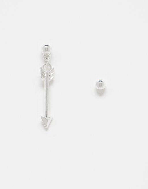 ASOS DESIGN stud and drop earring with arrow pendant in real silver plate