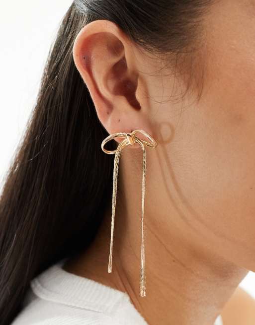 ASOS DESIGN stud earrings with bow chain design in gold tone