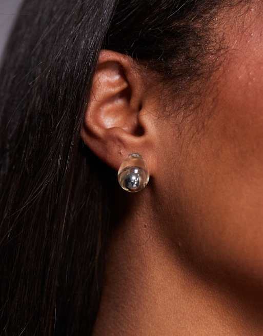 ASOS DESIGN stud earrings with clear resin detail in silver tone