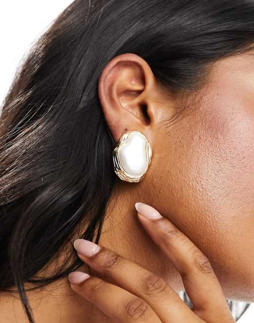 ASOS DESIGN stud earrings with faux natural pearl in gold tone